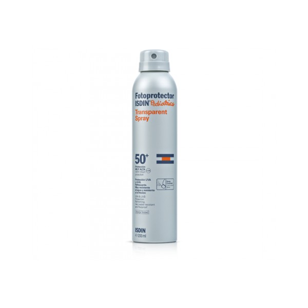 Fotoprotector Isdin Pediatrics Transparent spray SPF 50+, ofrece muy alta protección solar para la piel frágil del niño intolerante al sol.